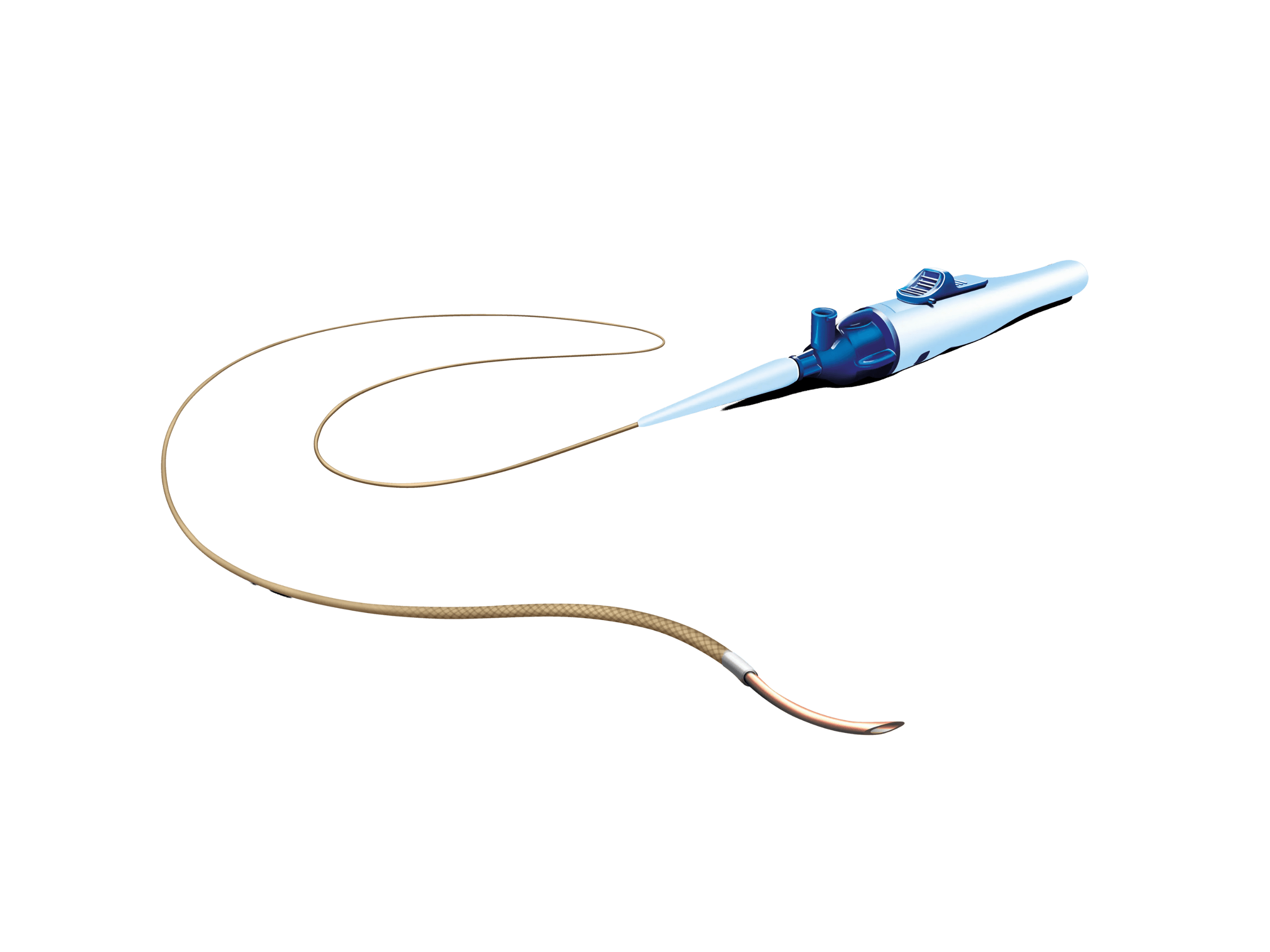 Cross chronic total occlusions with success. The BeBack crossing catheter is a low profile support catheter that has a crossing and targeted re-entry capability with a length-adjustable and 360° rotational Nitinol needle. The c-shaped radiopaque marker indicates in which direction the curved needle protrudes from the tip of the catheter.